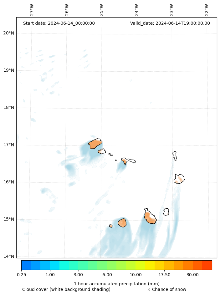 - Snow mixing ratio (g kg¯¹)