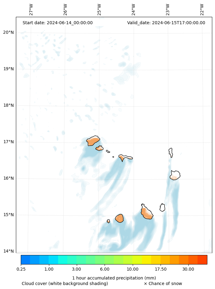- Snow mixing ratio (g kg¯¹)