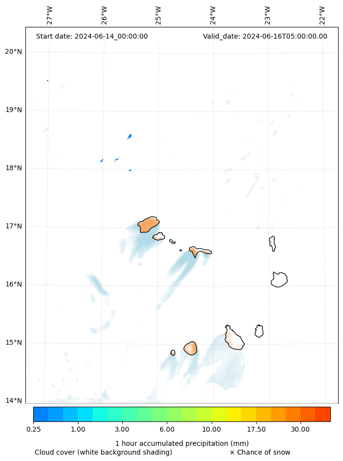 - Snow mixing ratio (g kg¯¹)