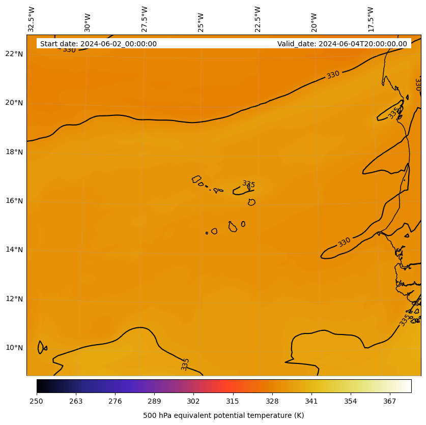 - Equivalent Potential Temperature (K)