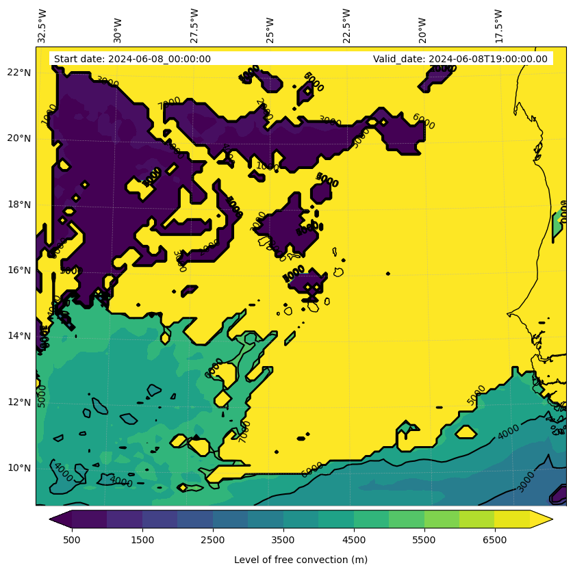 - Level of free convection (m)