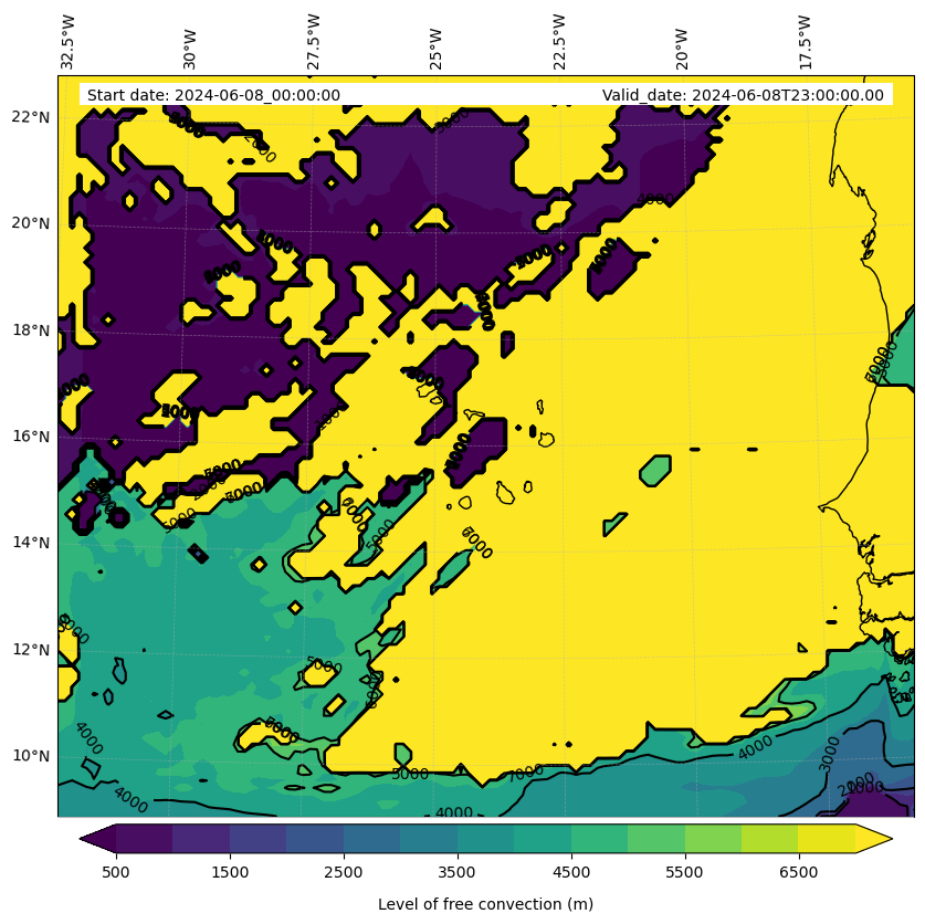 - Level of free convection (m)
