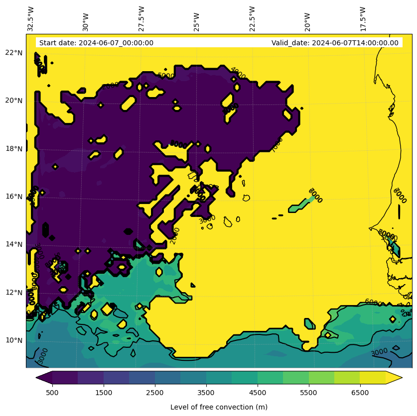 - Level of free convection (m)