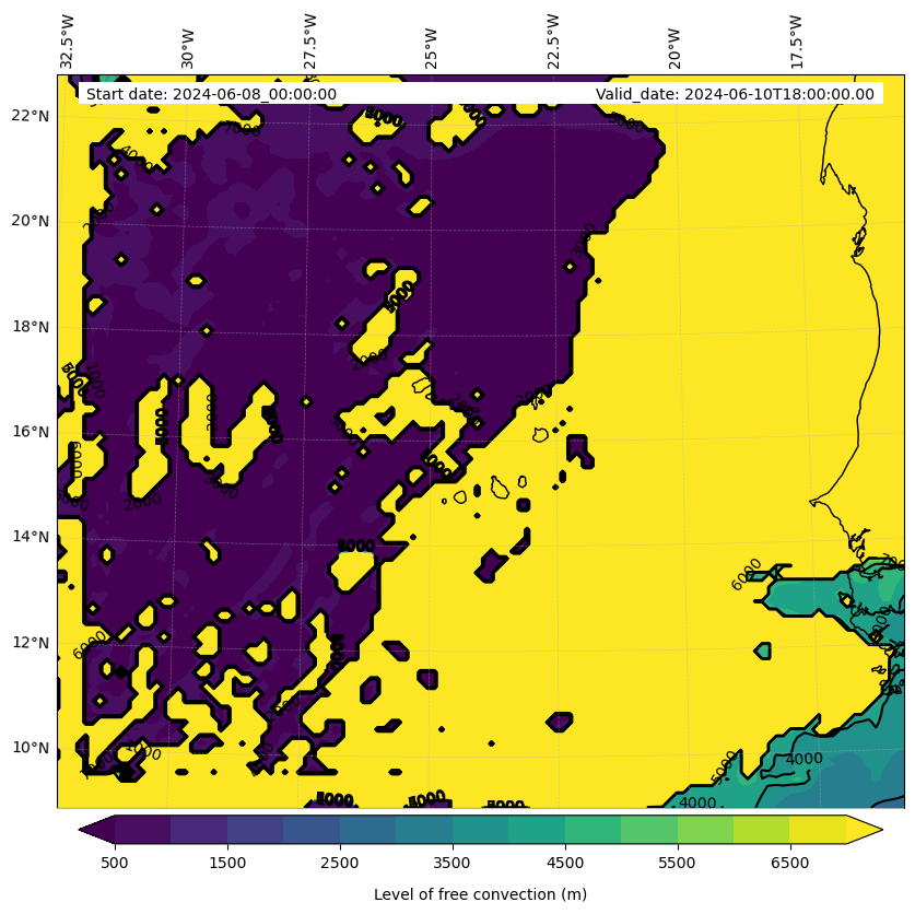 - Level of free convection (m)