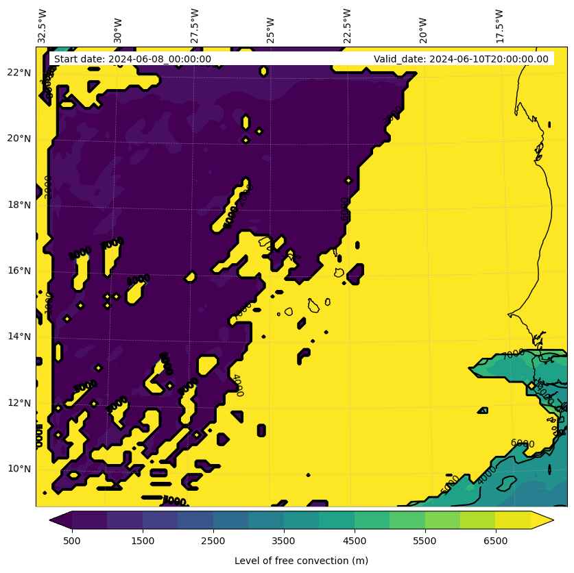 - Level of free convection (m)