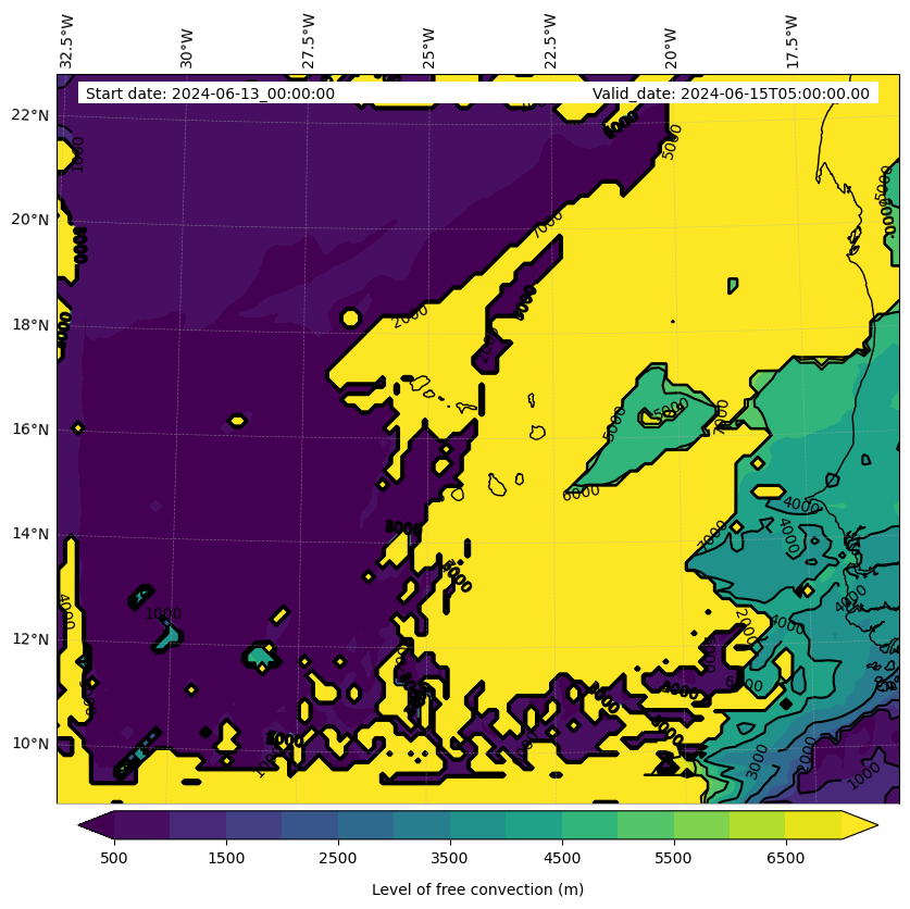 - Level of free convection (m)
