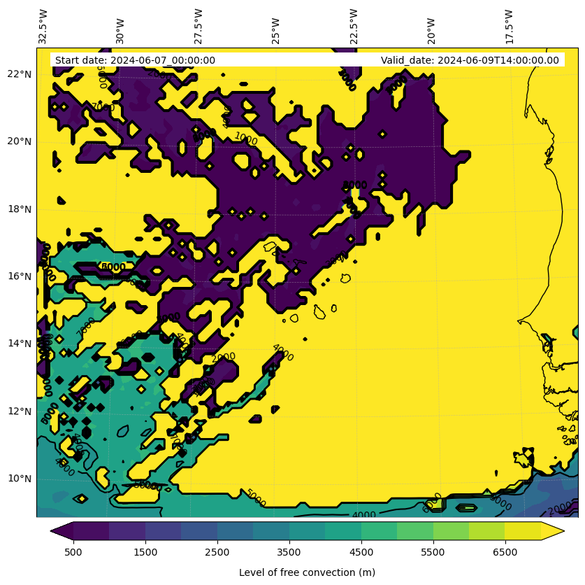 - Level of free convection (m)