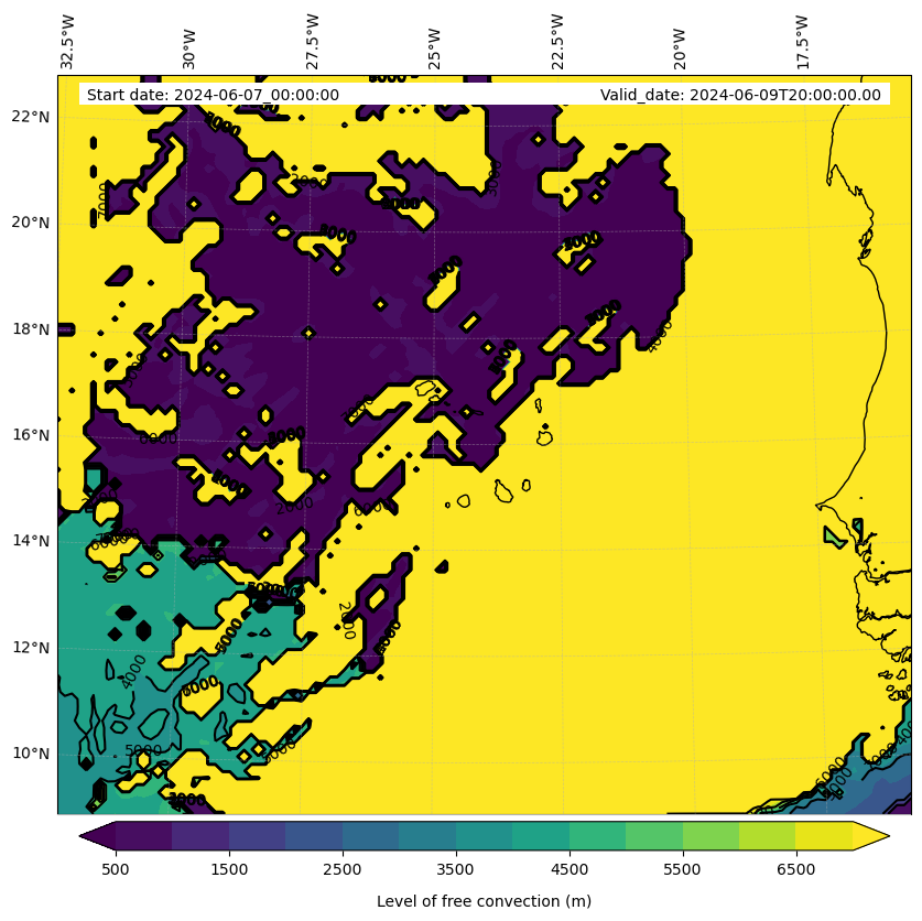 - Level of free convection (m)