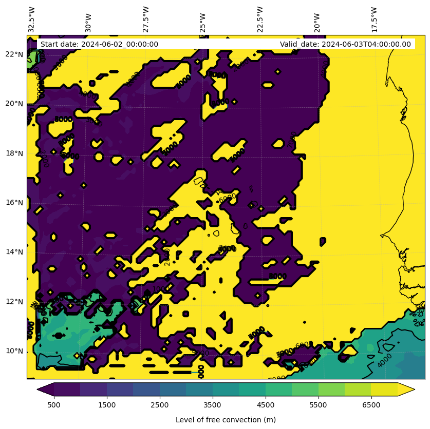 - Level of free convection (m)