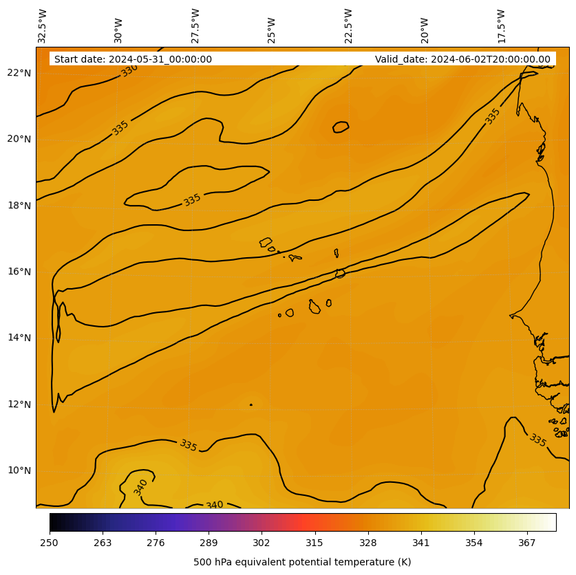 - Equivalent Potential Temperature (K)