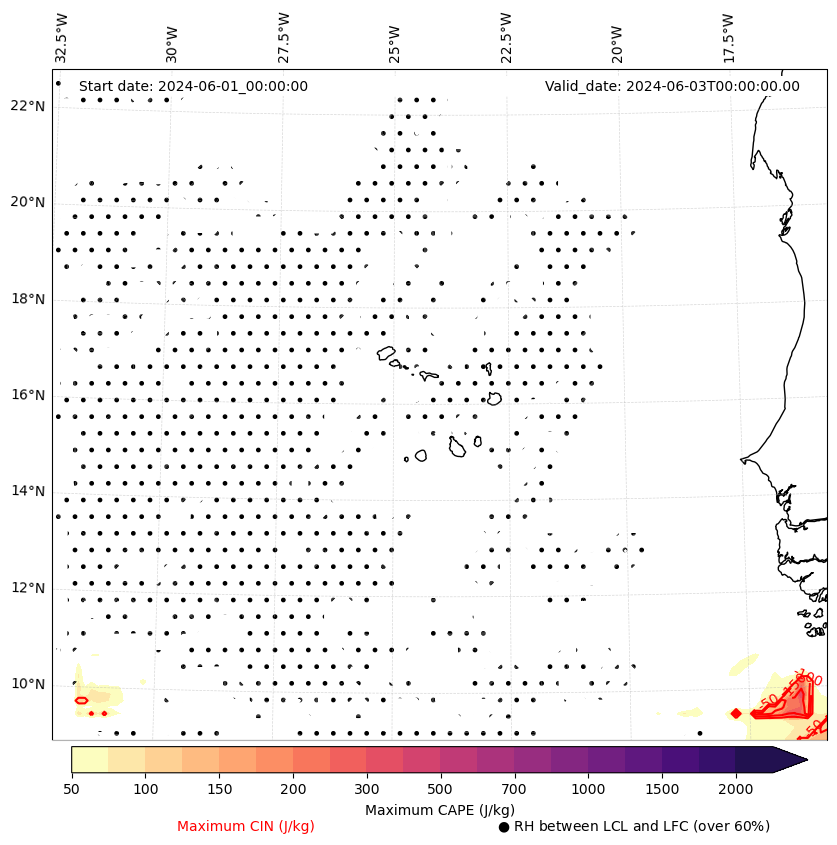 • Maximum CAPE (J/Kg)