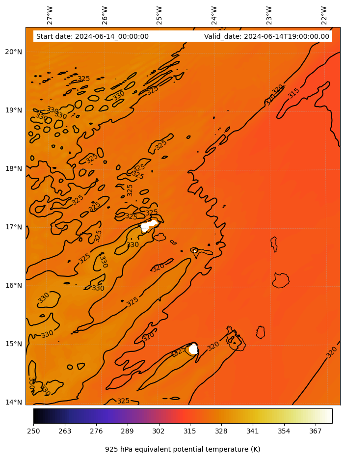- Equivalent Potential Temperature (K)