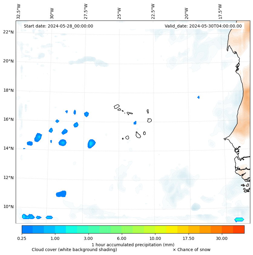 - Snow mixing ratio (g kg¯¹)