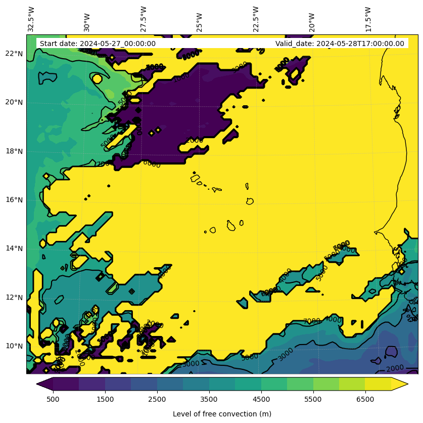 - Level of free convection (m)