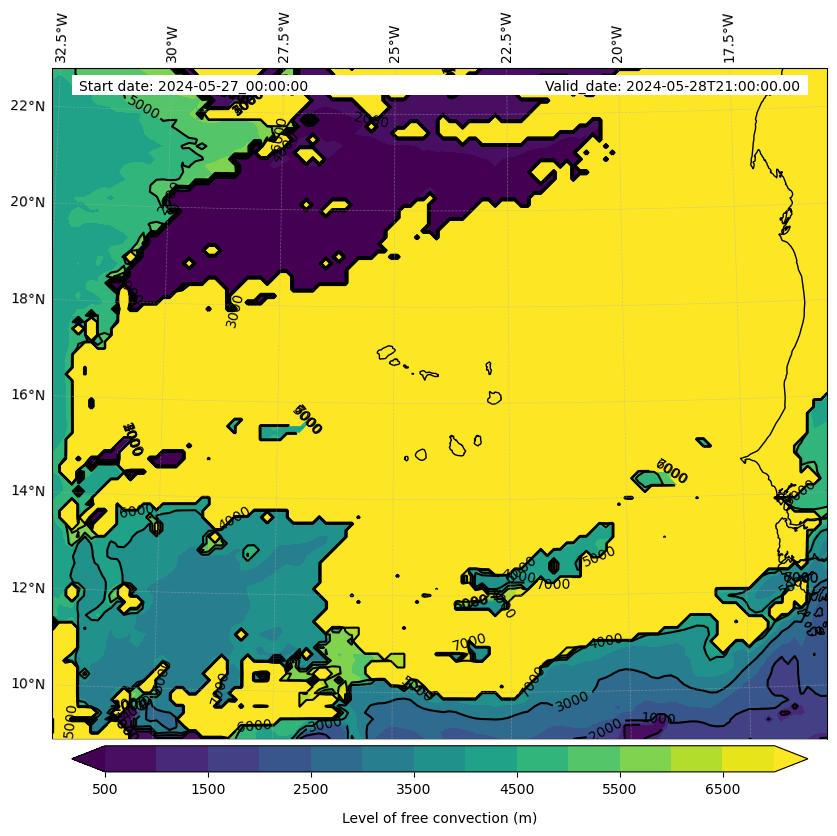 - Level of free convection (m)