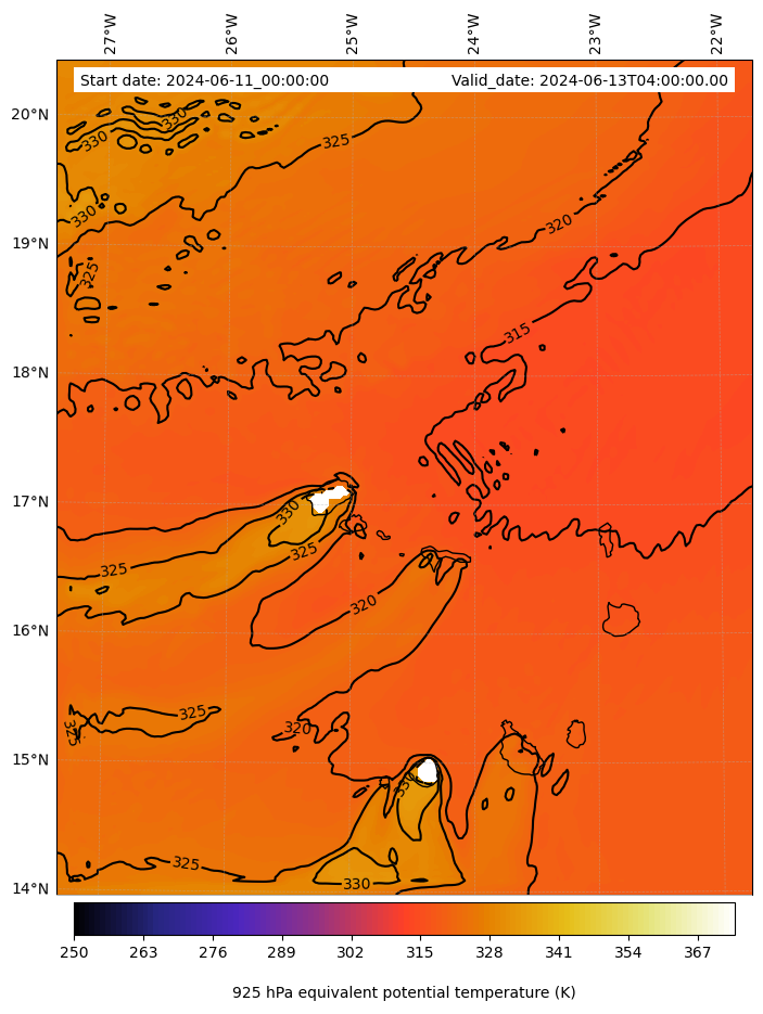 - Equivalent Potential Temperature (K)