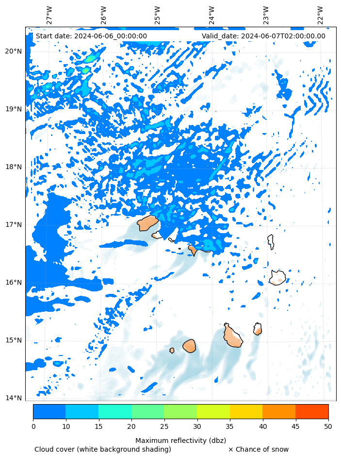- Snow mixing ratio (g kg¯¹)