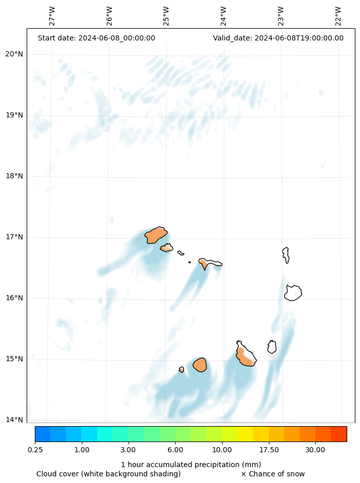 - Snow mixing ratio (g kg¯¹)