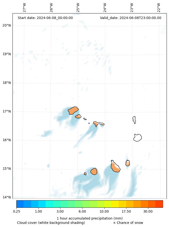 - Snow mixing ratio (g kg¯¹)