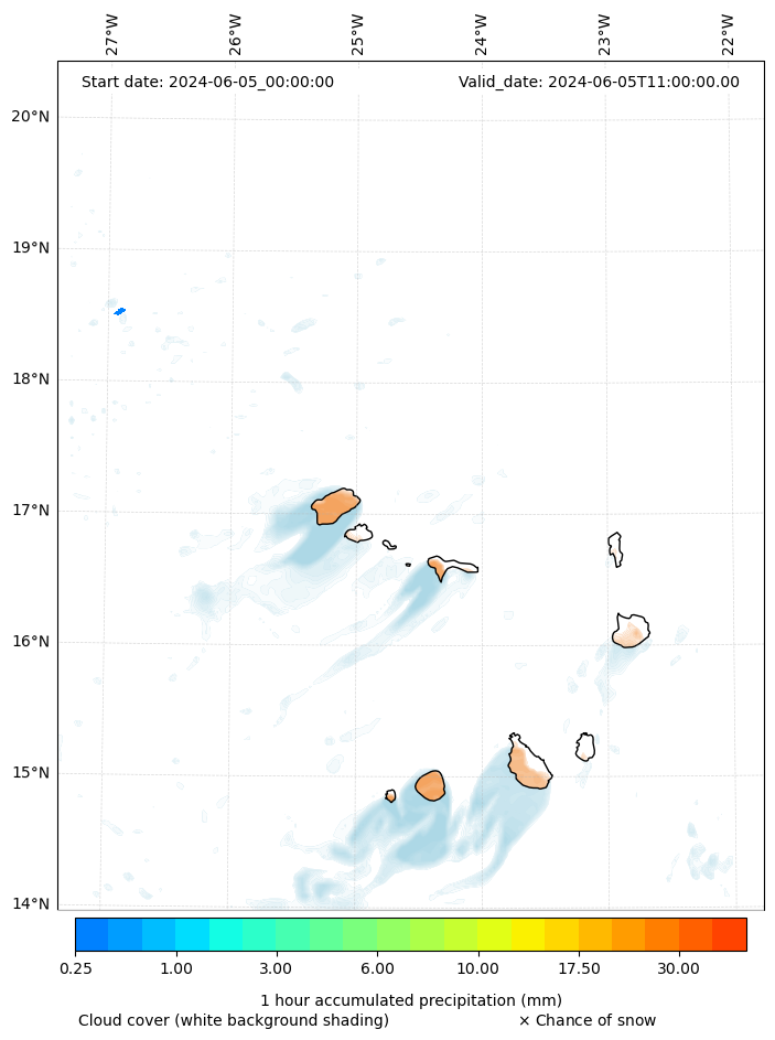 - Snow mixing ratio (g kg¯¹)