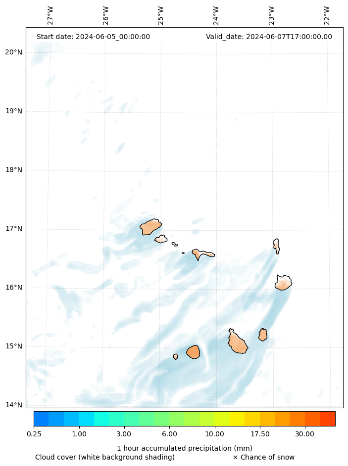 - Snow mixing ratio (g kg¯¹)