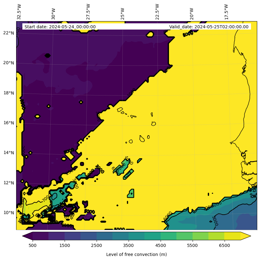 - Level of free convection (m)