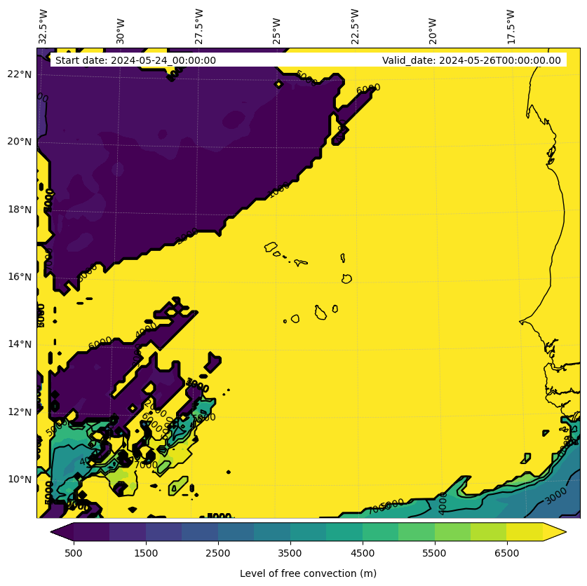 - Level of free convection (m)