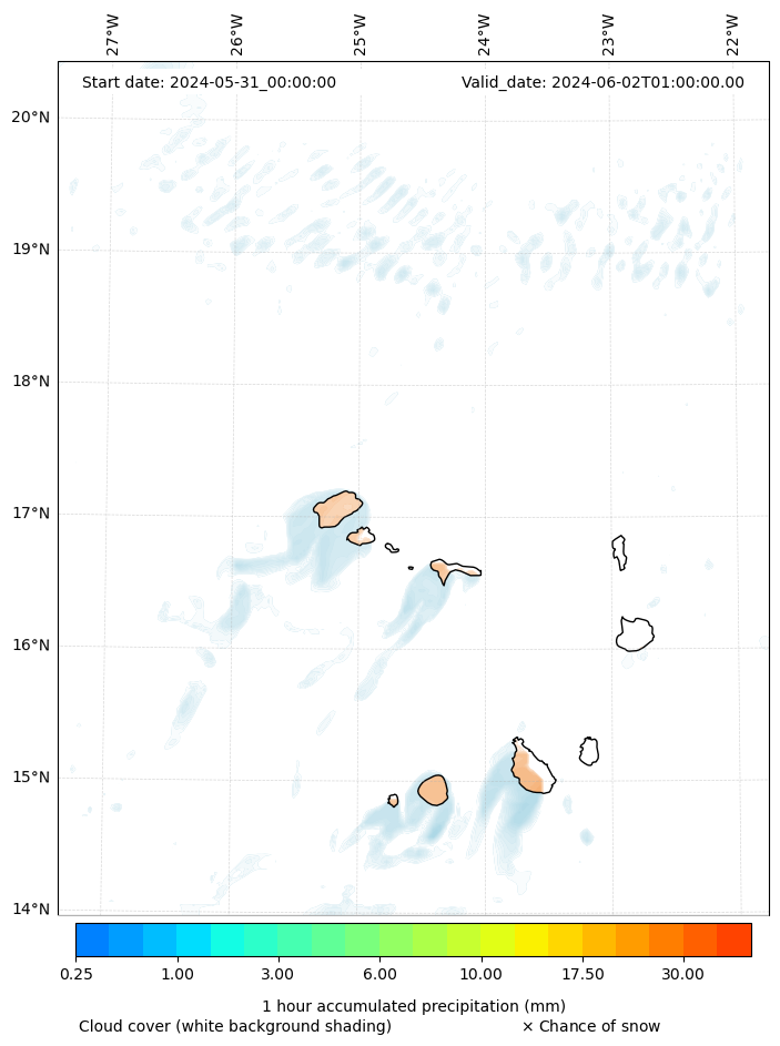 - Snow mixing ratio (g kg¯¹)