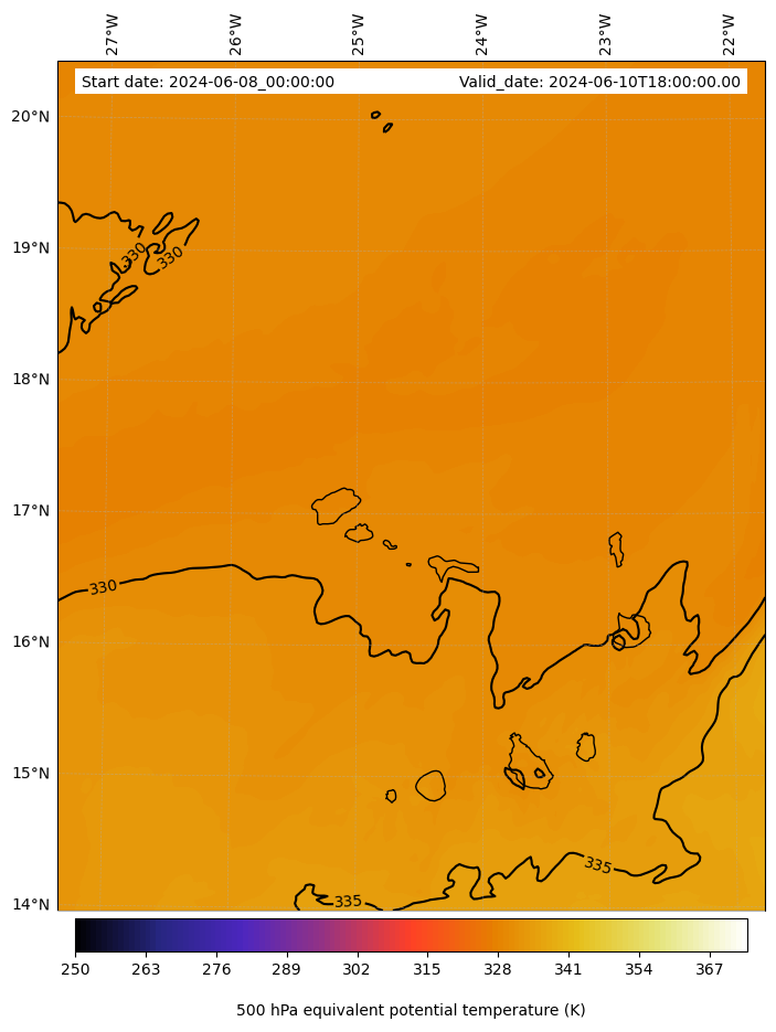 - Equivalent Potential Temperature (K)