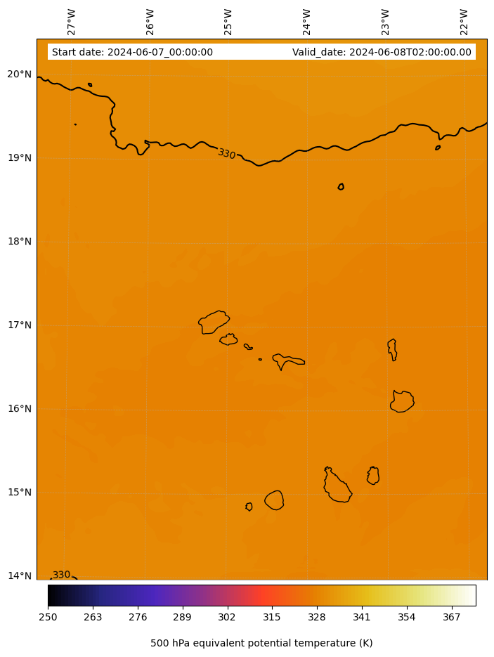 - Equivalent Potential Temperature (K)