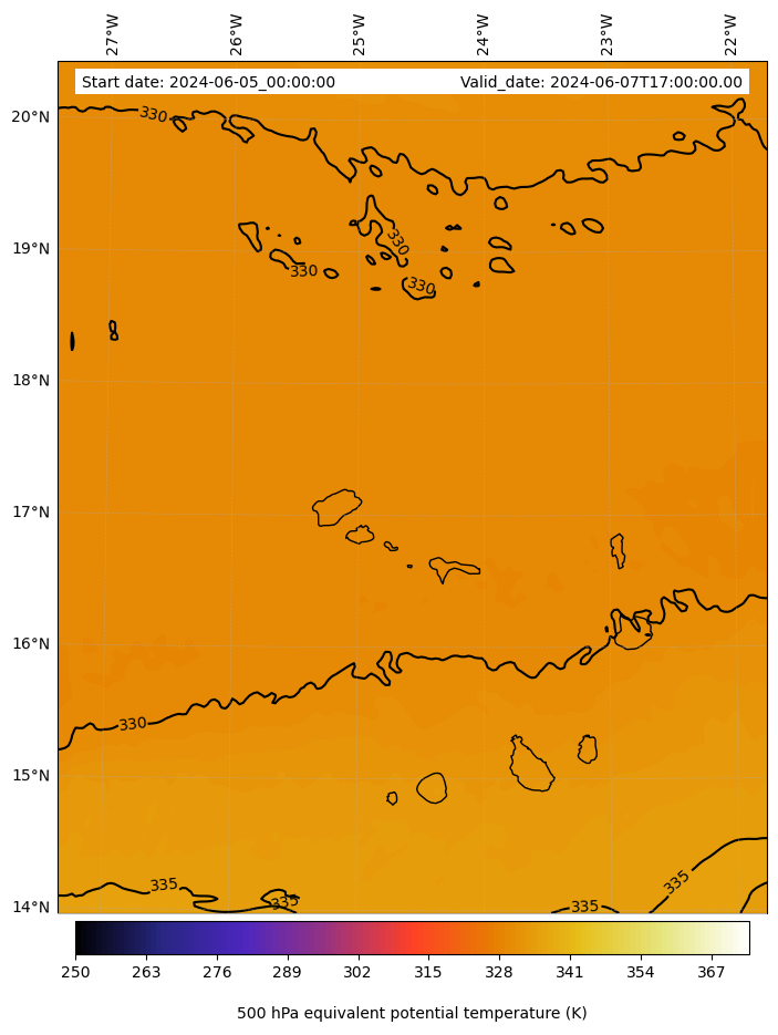 - Equivalent Potential Temperature (K)