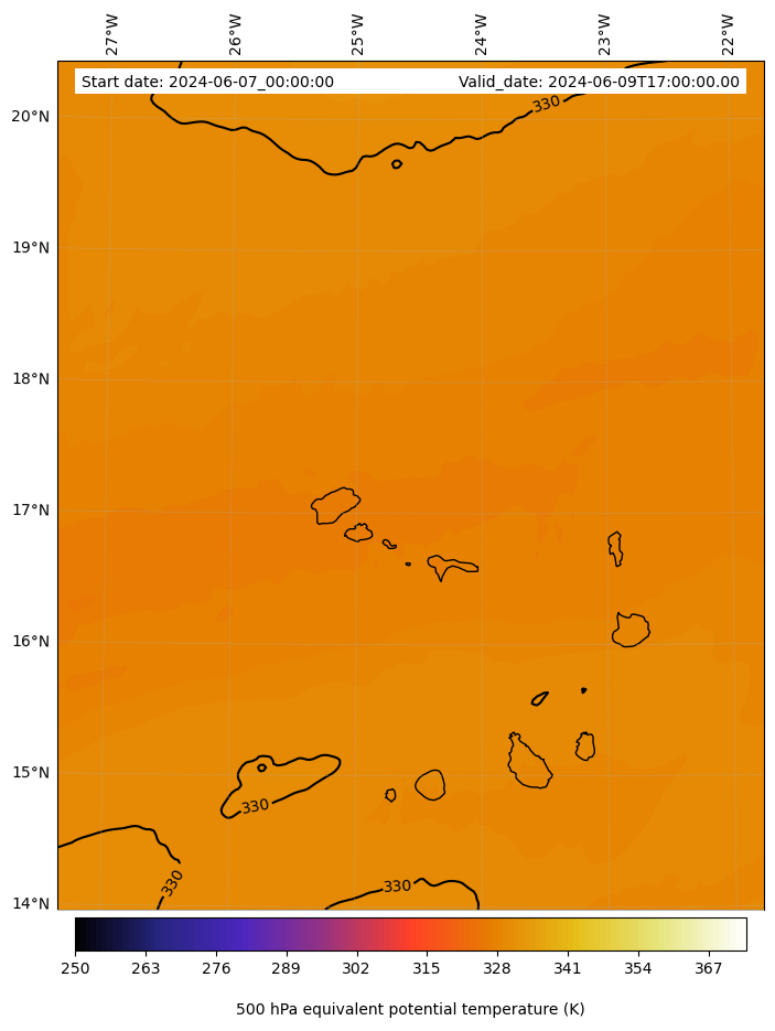 - Equivalent Potential Temperature (K)