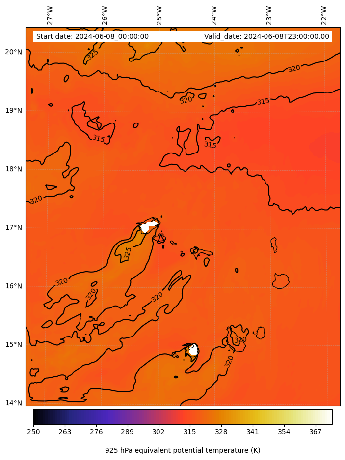 - Equivalent Potential Temperature (K)
