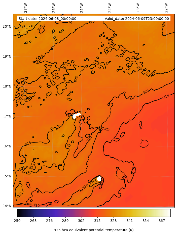 - Equivalent Potential Temperature (K)