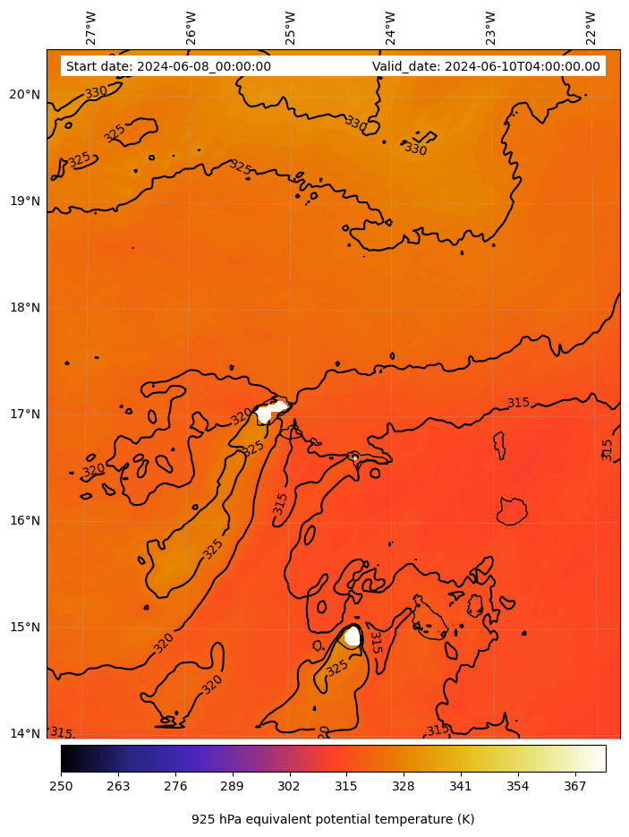 - Equivalent Potential Temperature (K)