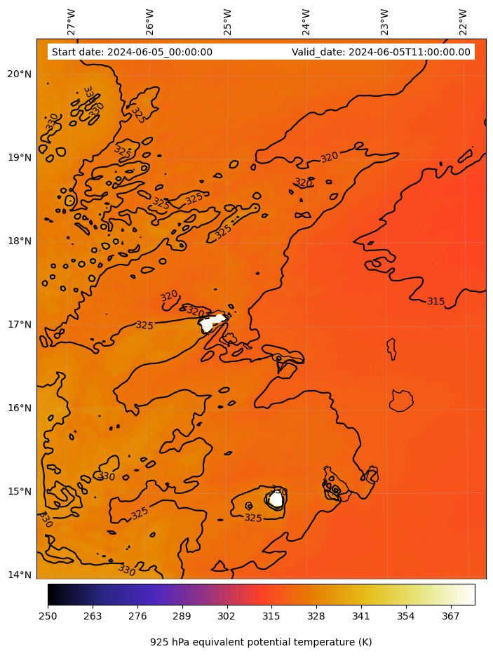 - Equivalent Potential Temperature (K)