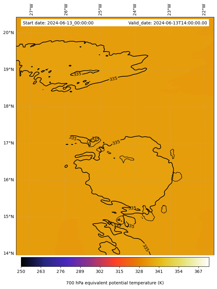 - Equivalent Potential Temperature (K)