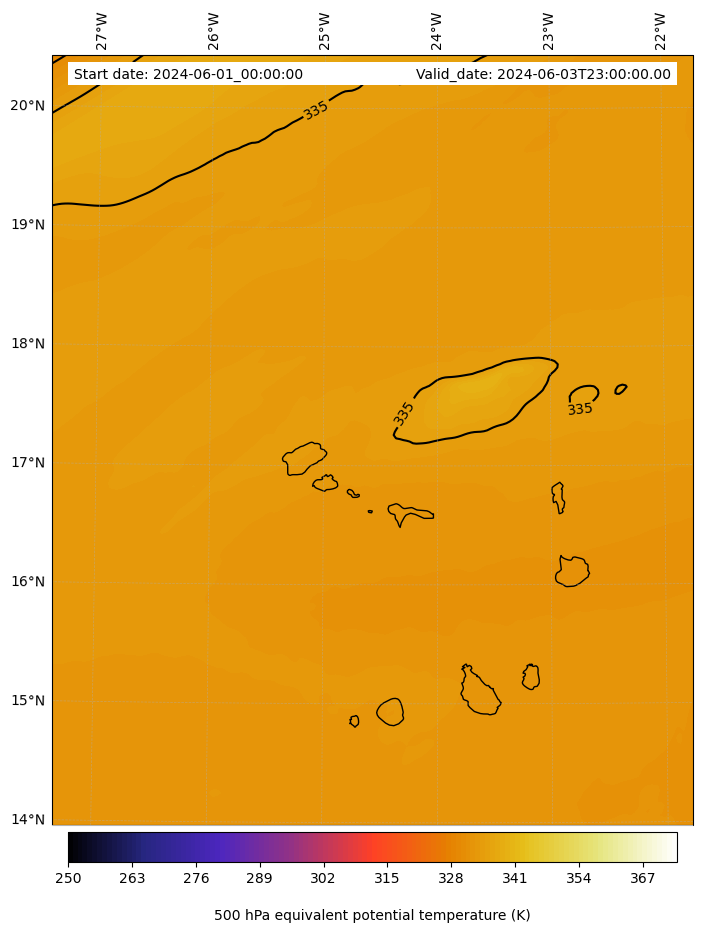 - Equivalent Potential Temperature (K)