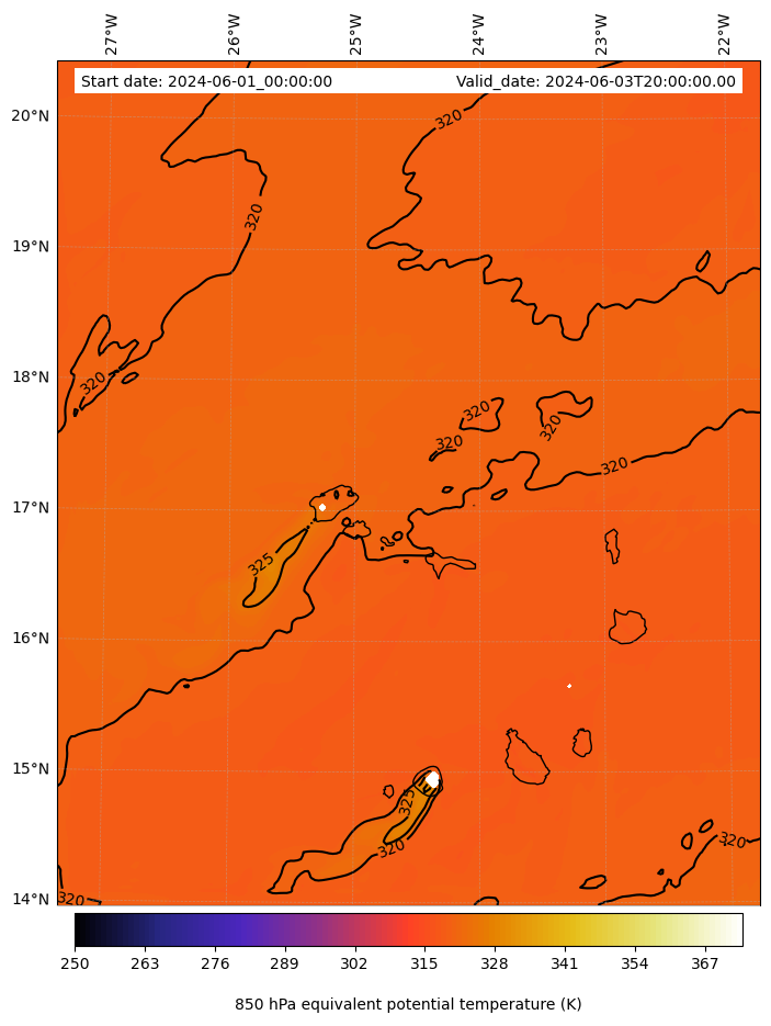 - Equivalent Potential Temperature (K)