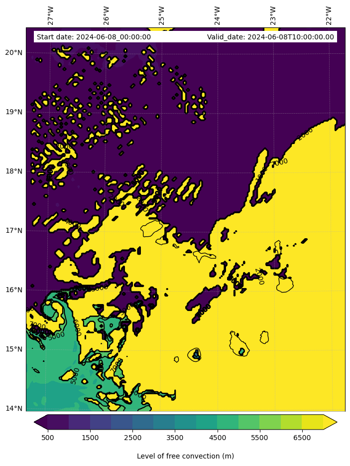 - Level of free convection (m)