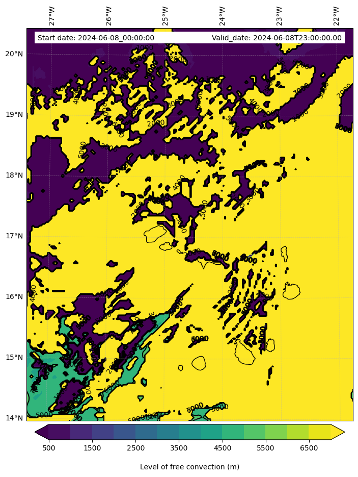 - Level of free convection (m)