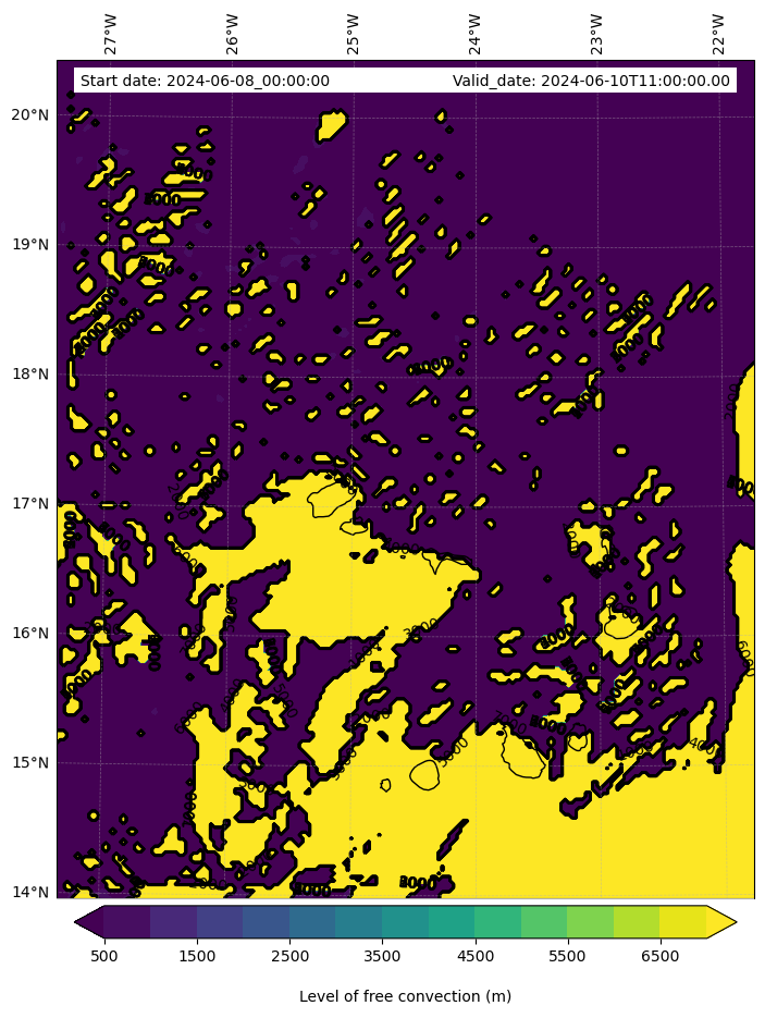 • Level of free convection (m)