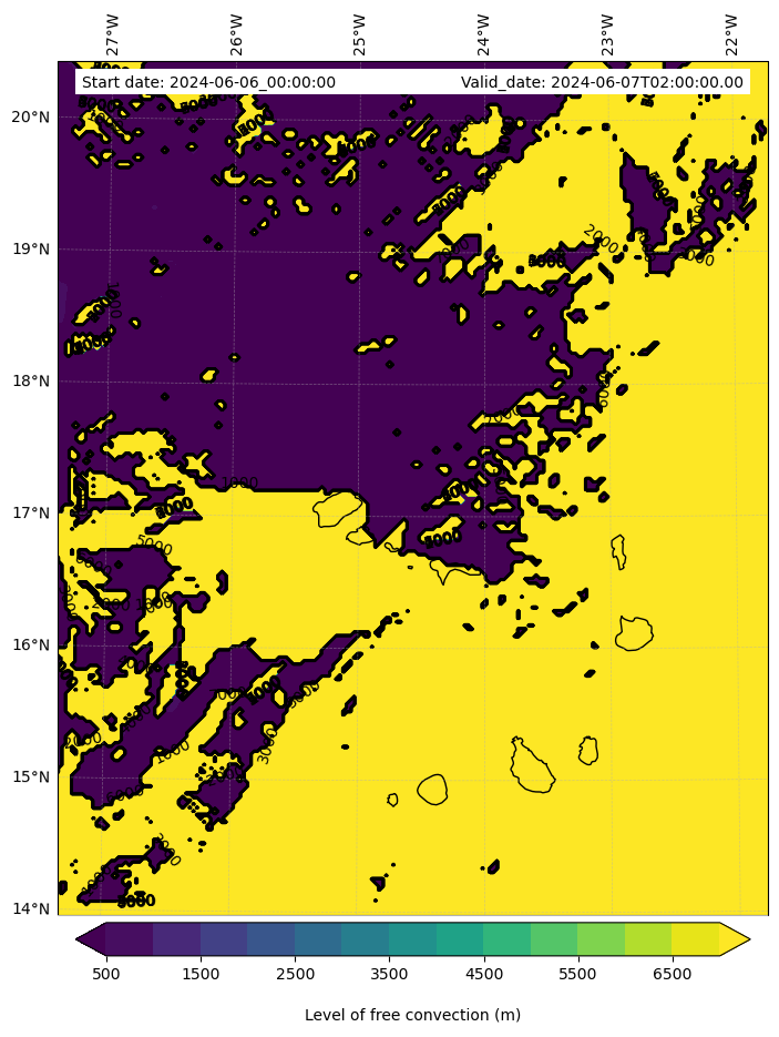 - Level of free convection (m)