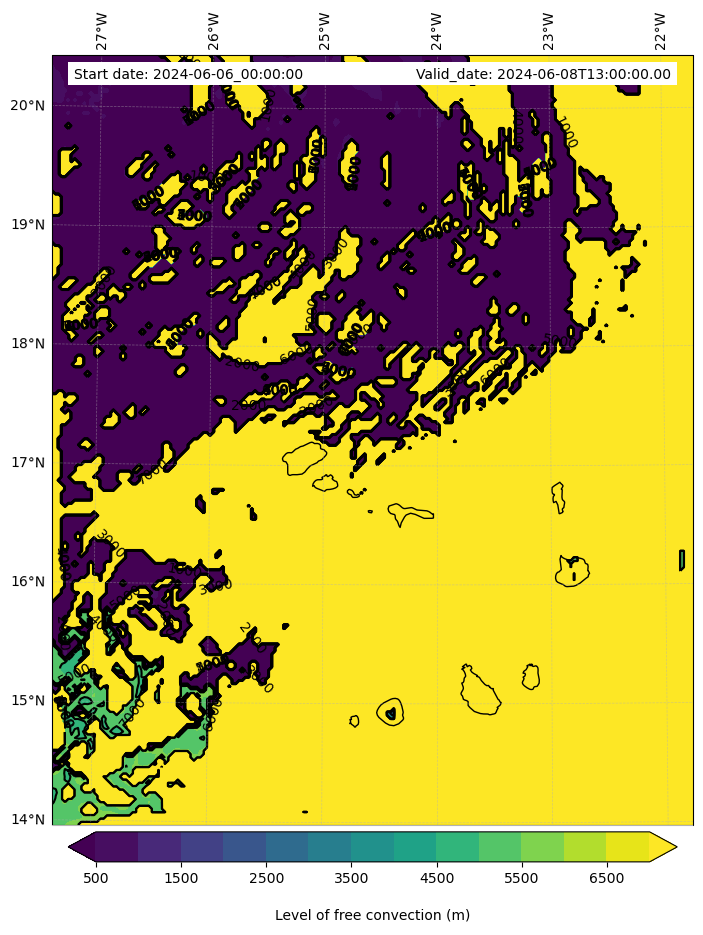 - Level of free convection (m)