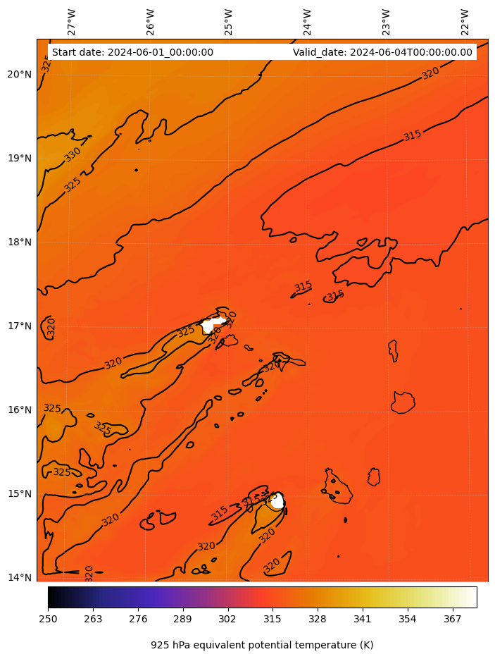 - Equivalent Potential Temperature (K)