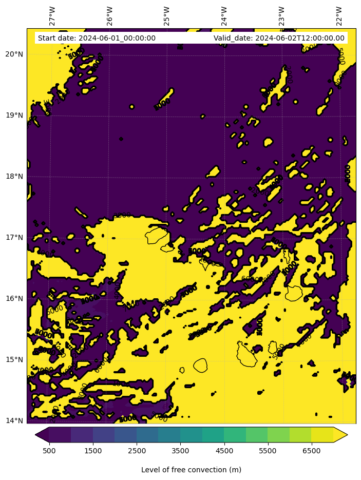 • Level of free convection (m)