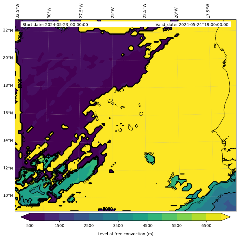 • Level of free convection (m)