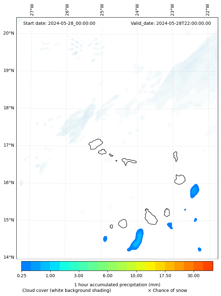 - Snow mixing ratio (g kg¯¹)
