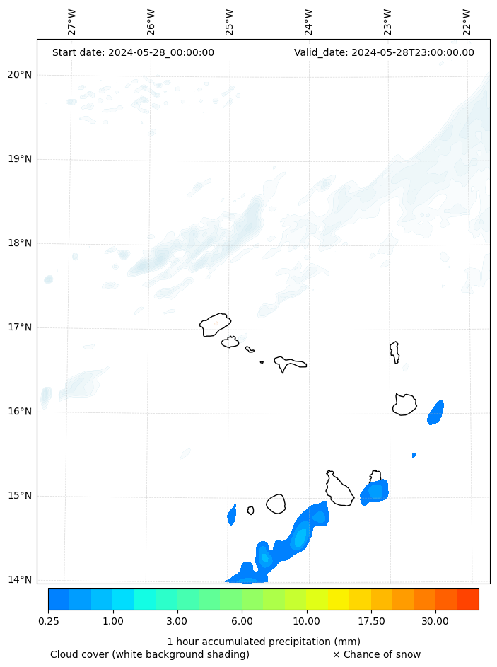 - Snow mixing ratio (g kg¯¹)