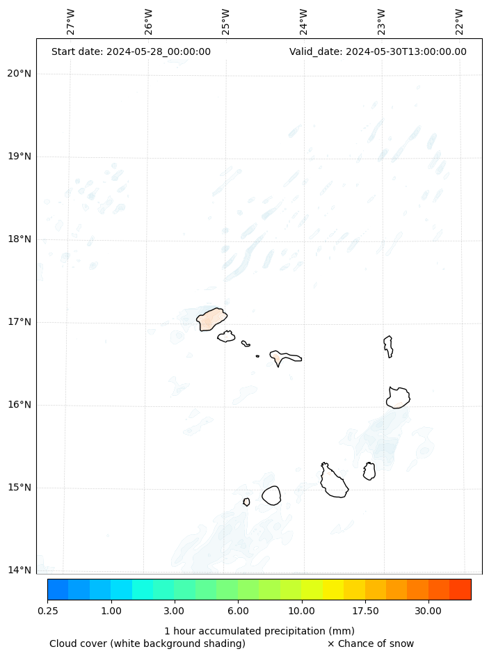 - Snow mixing ratio (g kg¯¹)